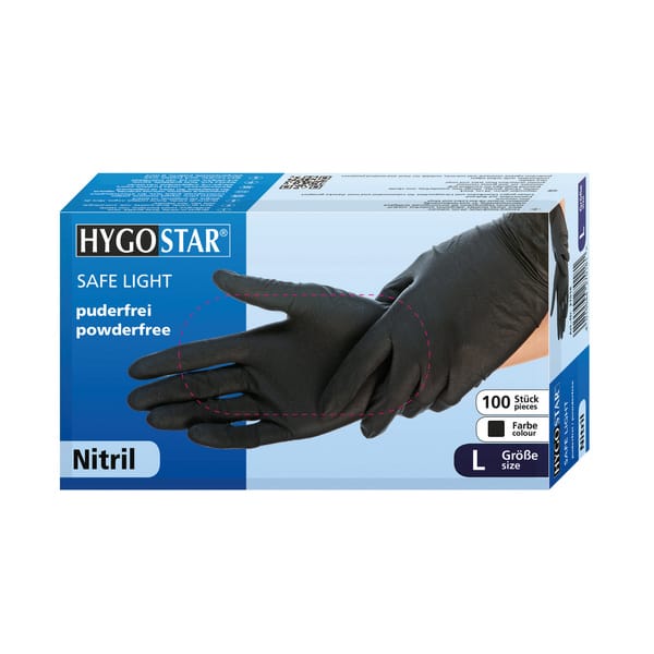 Hygostar Safe Light Nitril-Einweghandschuhe, schwarz, puderfrei, unsteril, 100 Stück