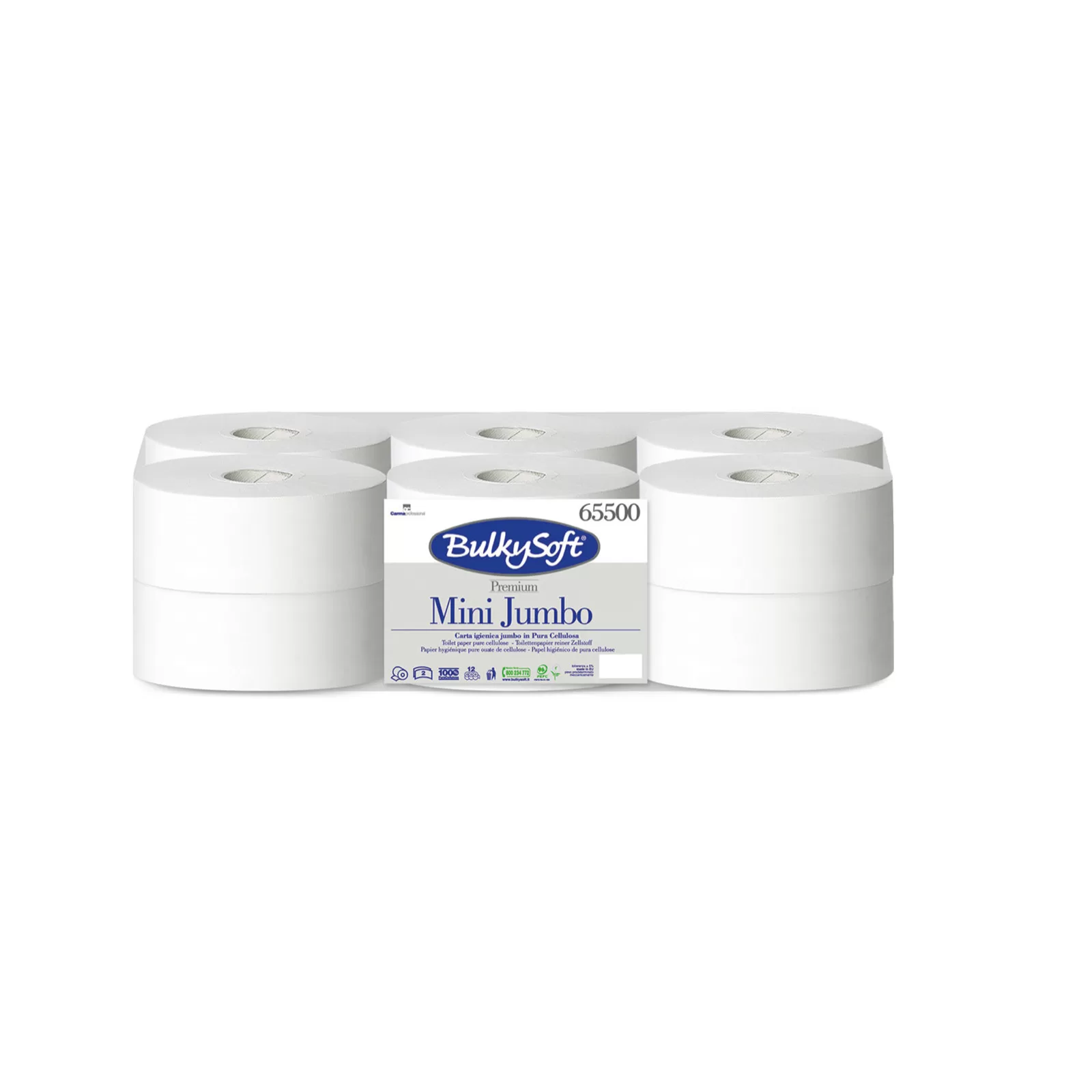 Bulkysoft Premium Toilettenpapier Mini Jumbo -12 Rollen (2-lagig)